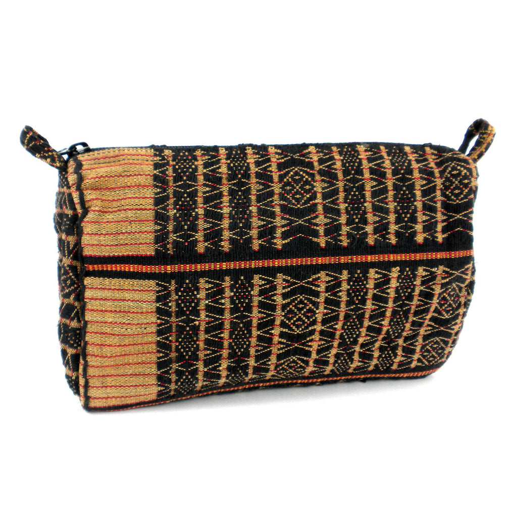 This toiletry bag is made from traditional Thai fabric and lined with white plastic with internal pockets. Measures 10 inches by 7 inches.