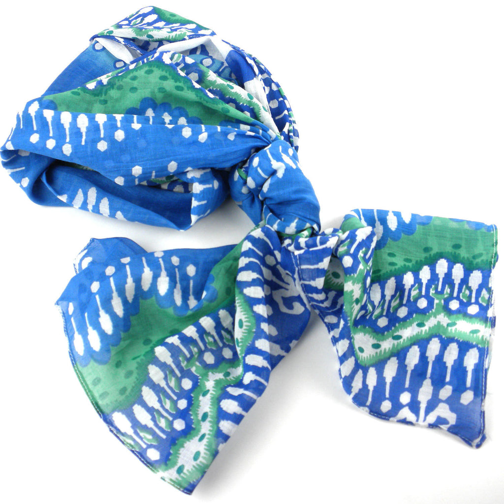 White and Blue Ikat Cotton Scarf - Asha Handicrafts